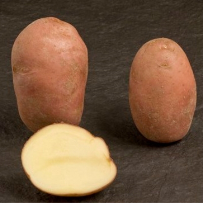 Куст картофеля Аксона имеет среднюю высоту и прямостоячую форму. Листья мелкие, темно-зеленые, со слабой волнистостью края, что придает растению аккуратный вид. Клубни этого сорта имеют удлиненно-овальную форму и средний размер — их масса варьируется от 80 до 149 граммов. Кожура клубней красного цвета, гладкая на ощупь, что делает их привлекательными для потребителей. Мякоть же обладает кремовой или желтой окраской, что также положительно сказывается на восприятии продукта.