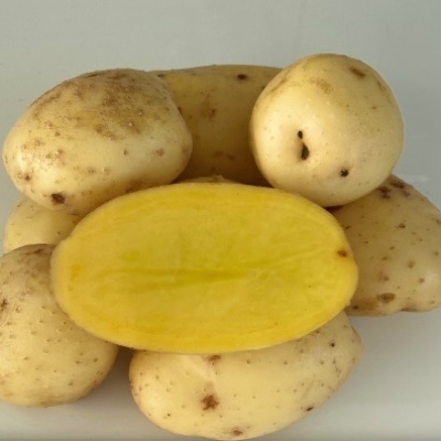 Что касается клубней, то они имеют овально-округлую форму с гладкой кожурой желтого цвета. Средний вес клубня составляет от 122 до 208 граммов, что делает их удобными для использования в различных блюдах. Мякоть клубней окрашена в светло-желтый или желтый цвет, а глубина глазков средняя.