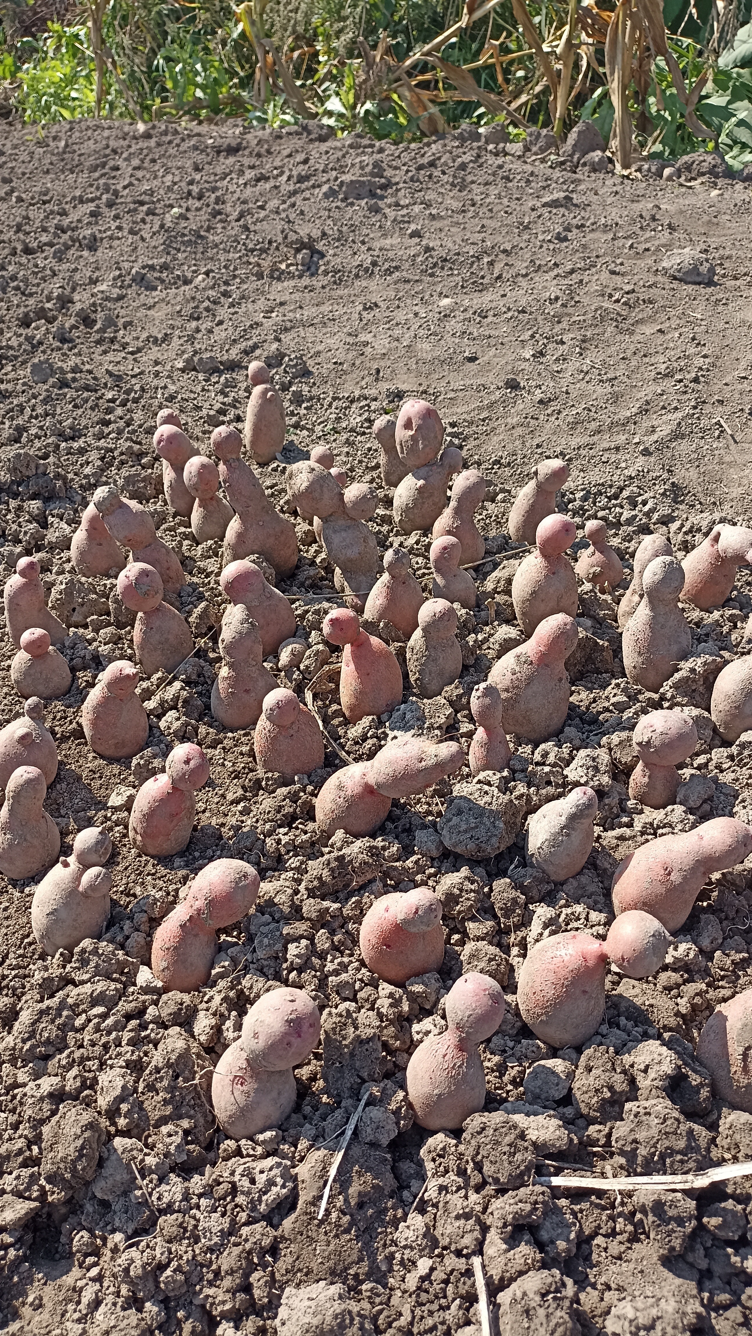 Недостатки: Из двух кг. семенных с маркетплейса половина не взошла, остальные чахлые и только несколько нормальных кустов. Очень похоже на ооспороз (бугорчатая парша), который поражает росток, он чернеет, то, что у меня и наблюдалось. Манифест и Алуэт выросли нормальными.