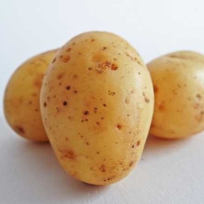 Что касается клубней, то они отличаются крупными размерами: масса одного клубня варьируется от 120 до 150 граммов. Форма клубня округлая, а окраска кожуры светло-бежевого цвета с синеватым оттенком у верхушки или желтая — это зависит от условий выращивания. Мякоть имеет белый цвет и обладает хорошими вкусовыми качествами.