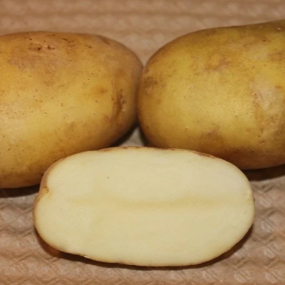 Окраска кожуры клубней желтая с гладкой до среднегрубой структурой, а мякоть имеет белый цвет без потемнения после термической обработки. Глазки мелкие, что также является положительным качеством данного сорта.