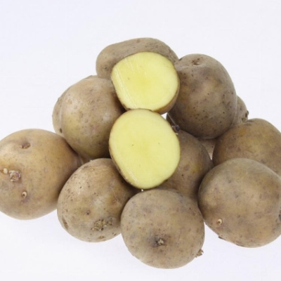 Размер клубней у данного сорта средний — они имеют округлую форму с желтой кожурой и желтой мякотью. Масса одного клубня колеблется от 84 до 120 граммов, что делает их удобными для использования в кулинарии. Глубина глазков средняя, что облегчает процесс очистки при приготовлении пищи.