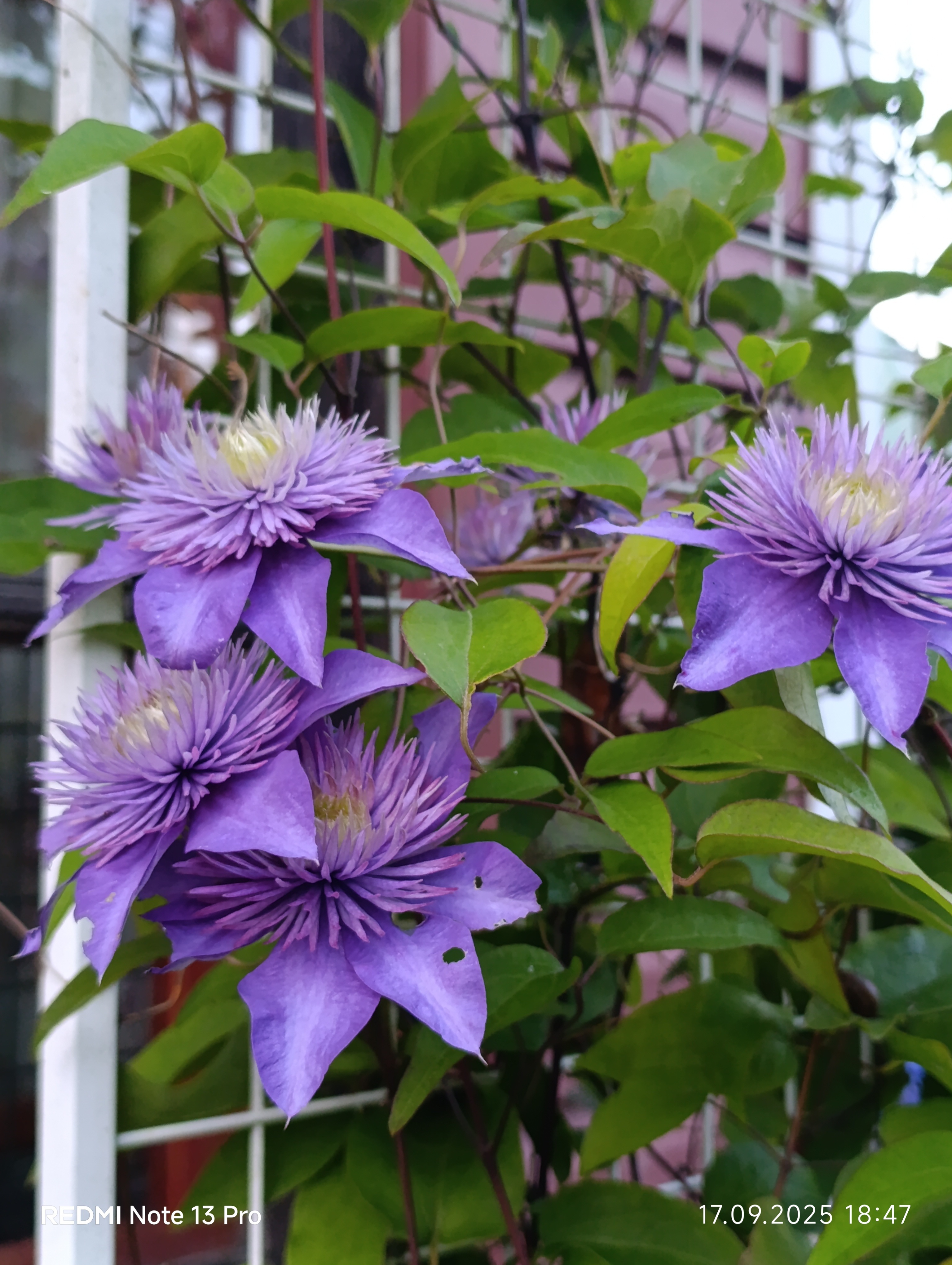 Преимущества: Великолепный клематис. Цветет практически все лето, очень красивый.