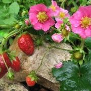 Клубника с розовыми цветами используется для получения урожаев, а также для декорирования участков, ведь кусты с яркими малиновыми, красными и светло-розовыми бутонами являются декоративными.