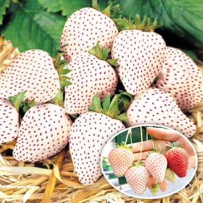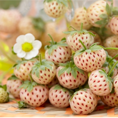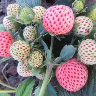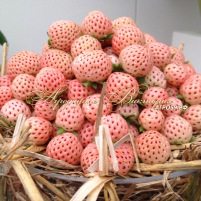 Плоды клубники Анабланка являются ее главным достоинством. Белый оттенок кожицы с выразительными красными семянками скрывает сочную мякоть, обладающую сладким ананасным вкусом. Плоды имеют средние размеры, округлую форму, достигают массы 20-30 г.