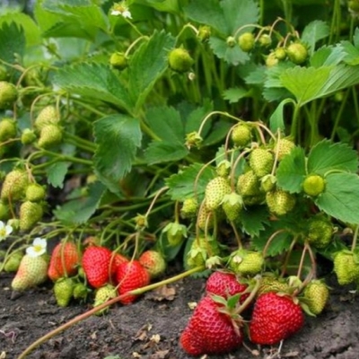 Ранней весной кусты подкармливают перегноем. Во время цветения растение подкармливают комплексными минеральными удобрениями. Калийные удобрения и зола, разведенные в воде, вносятся ближе к концу лета. В период, когда клубника начинает плодоносить, ее нельзя подкармливать и удобрять.