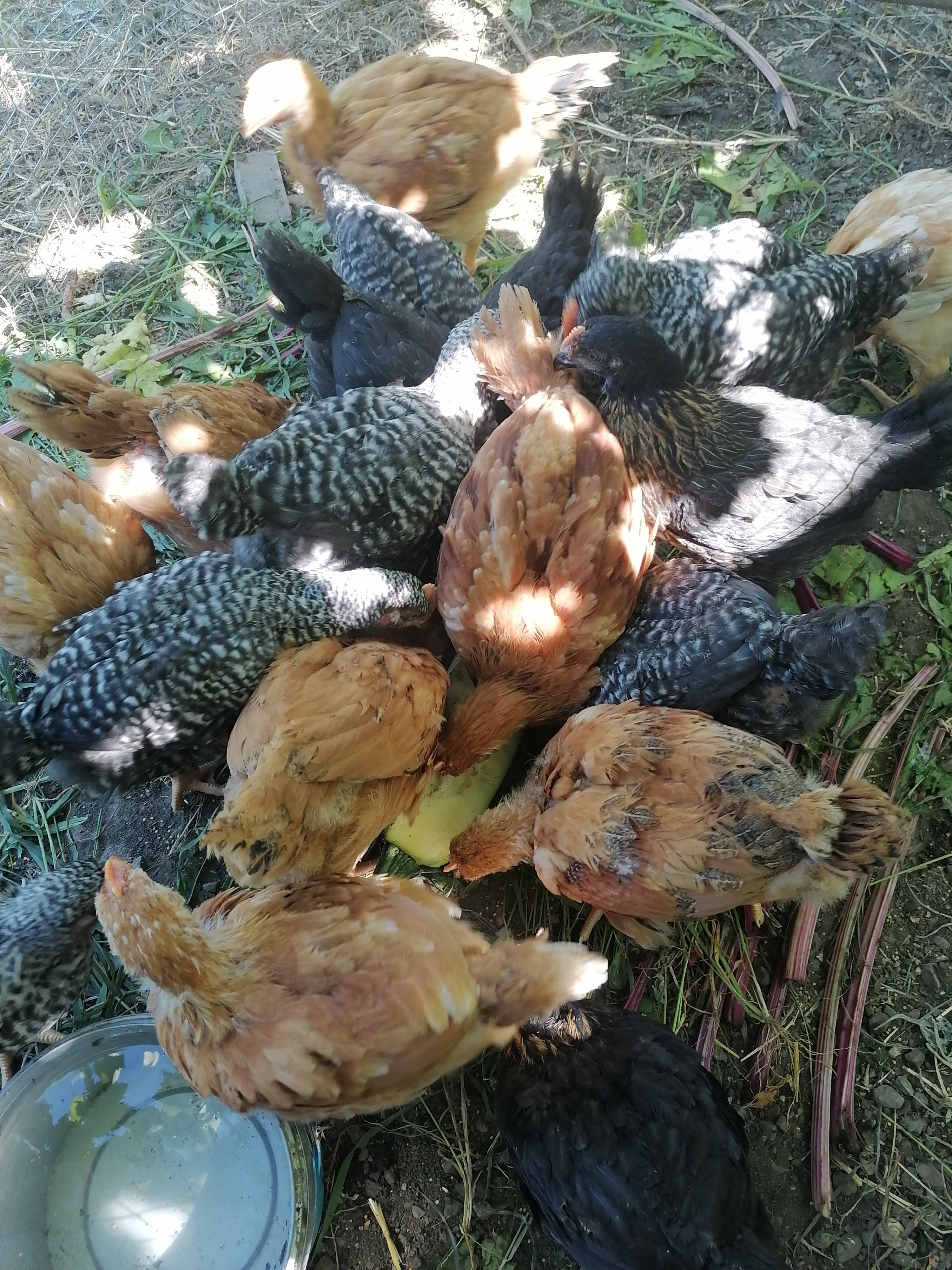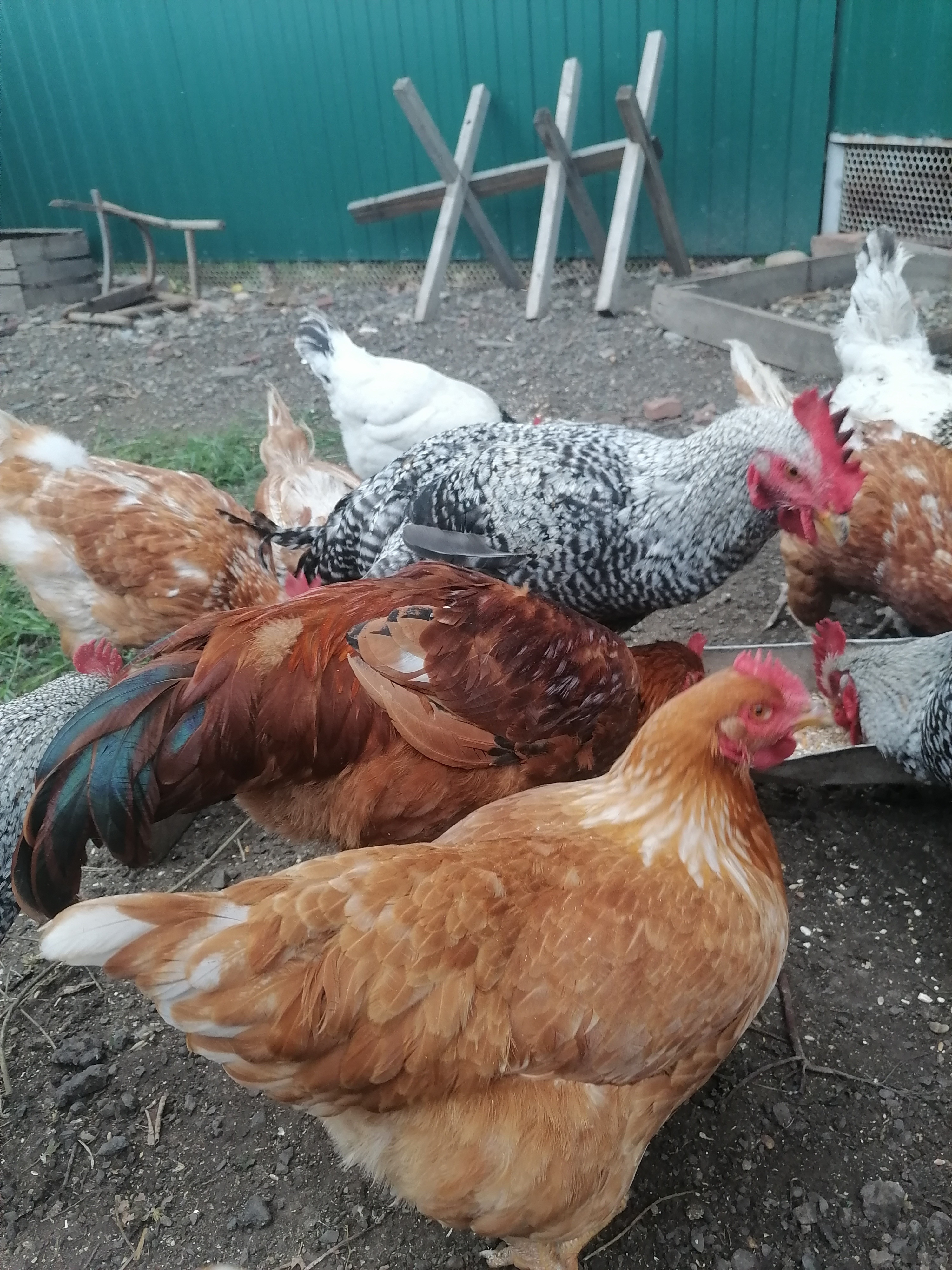 Преимущества: Крупная, неприхотливая птица. Быстро растут, яйценоскость хорошая, яйцо не очень крупное – до 60 г, реже чуть больше. Мясо отличное, по качеству, как говядина, темное, волокнистое. Вкус отличный, жир больше у копчика, легко срезается. Кость крепкая. Петухи крупные, забой с 4 месяцев, вес чистой тушки 1,8 кг-2 кг. Годовалый вышел на 5 кг (потрошеный). Держку отдельно от кур, ломают девок и обдирают кожу из-за своих габаритов. Не агрессивные. В еде не избирательны, даю норму в лоток, остальное на выгуле находят)). Линька проходит быстро.