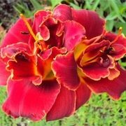 • Окраска цветка: огненно-красный, внутренние лепестки обрамлены контрастной тонкой каймой золотистого цвета
