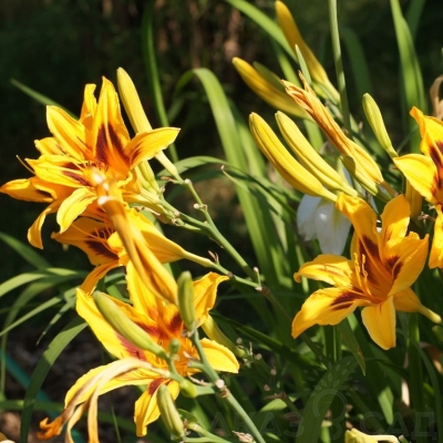 Среднерослое раскидистое растение состоит из множества прямостоячих или ниспадающих, веерообразно расположенных, мечевидных плотных листьев, окрашенных в интенсивные зеленые тона. Цветоносы, достигающие высоты 50-60 см, образуют соцветия, состоящие из 5-10 постоянно нарастающих бутонов.