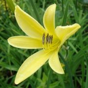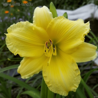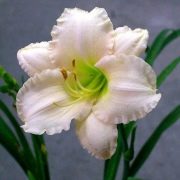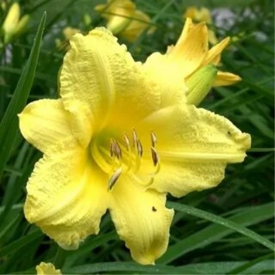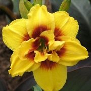 Цветоносы этого лилейника прямостоячие и достигают высоты 50 см. Цветки махровые, мелкие и имеют диаметр от 10 до 12 см. Окраска цветка лимонная, насыщенность яркая. Лепестки имеют волнистые края и гофрировку. Аромат нежный, но не очень интенсивный.