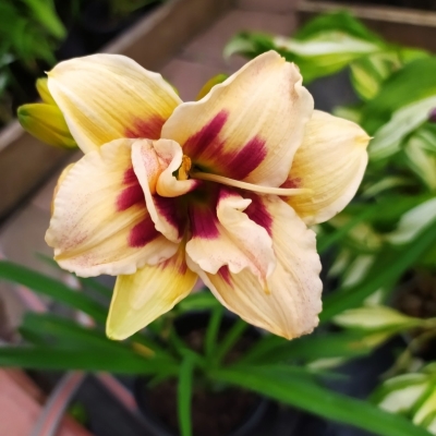 - Окраска цветка : персиковый, есть контрастный темно-пурпурный «глаз»