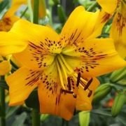 • Окраска цветка: ярко-желтый с редким темным крапом и оранжевыми пыльниками