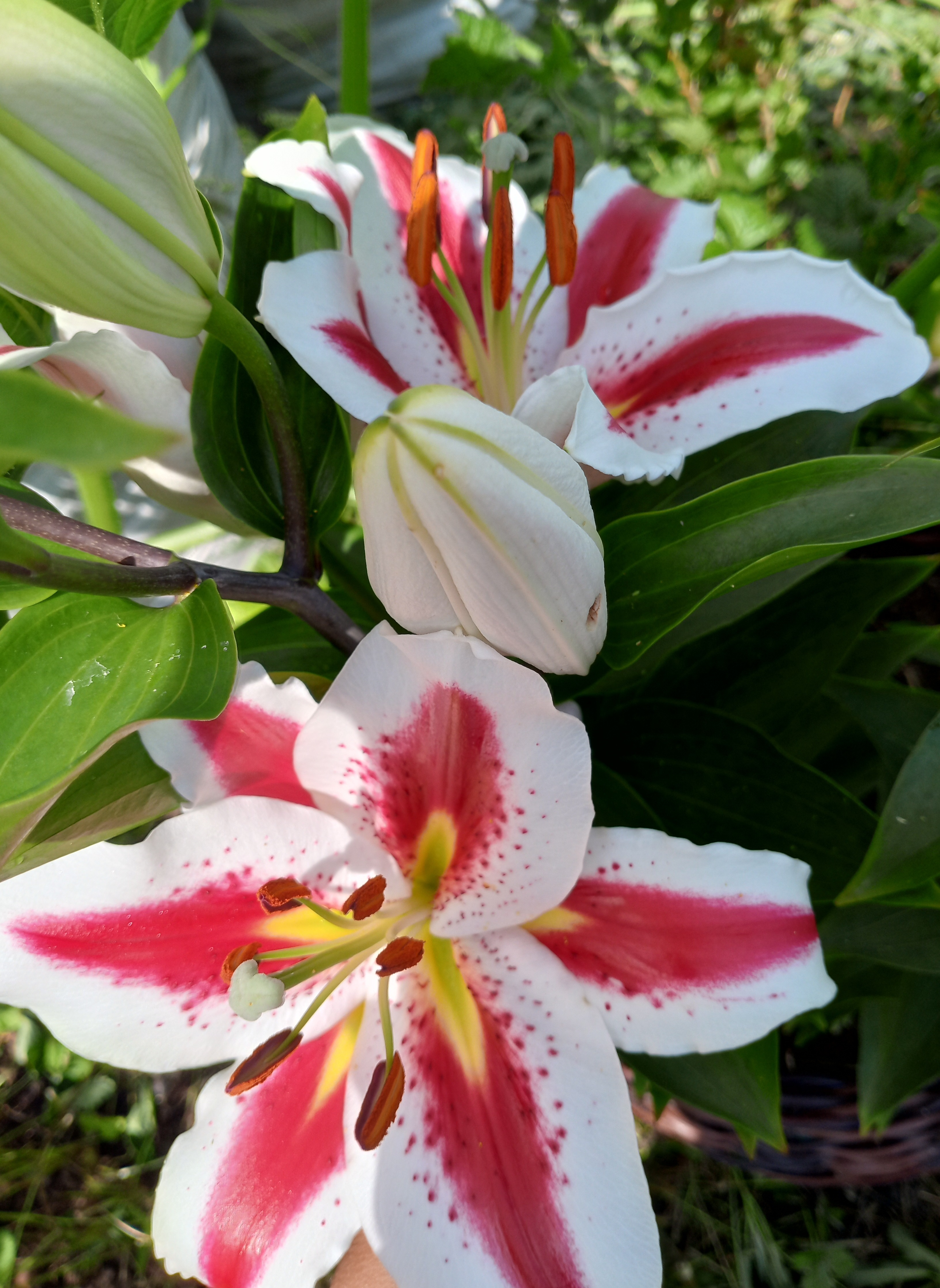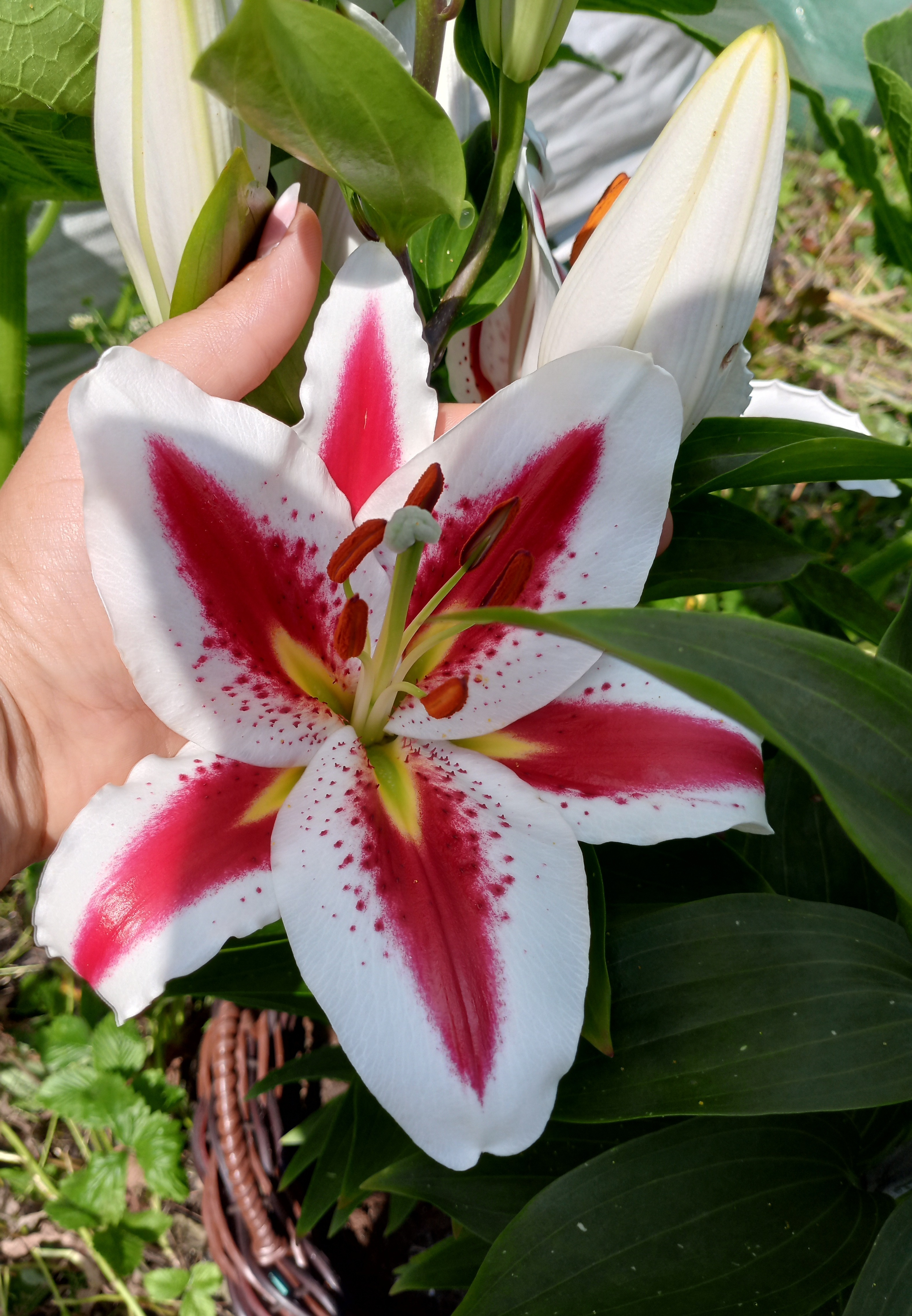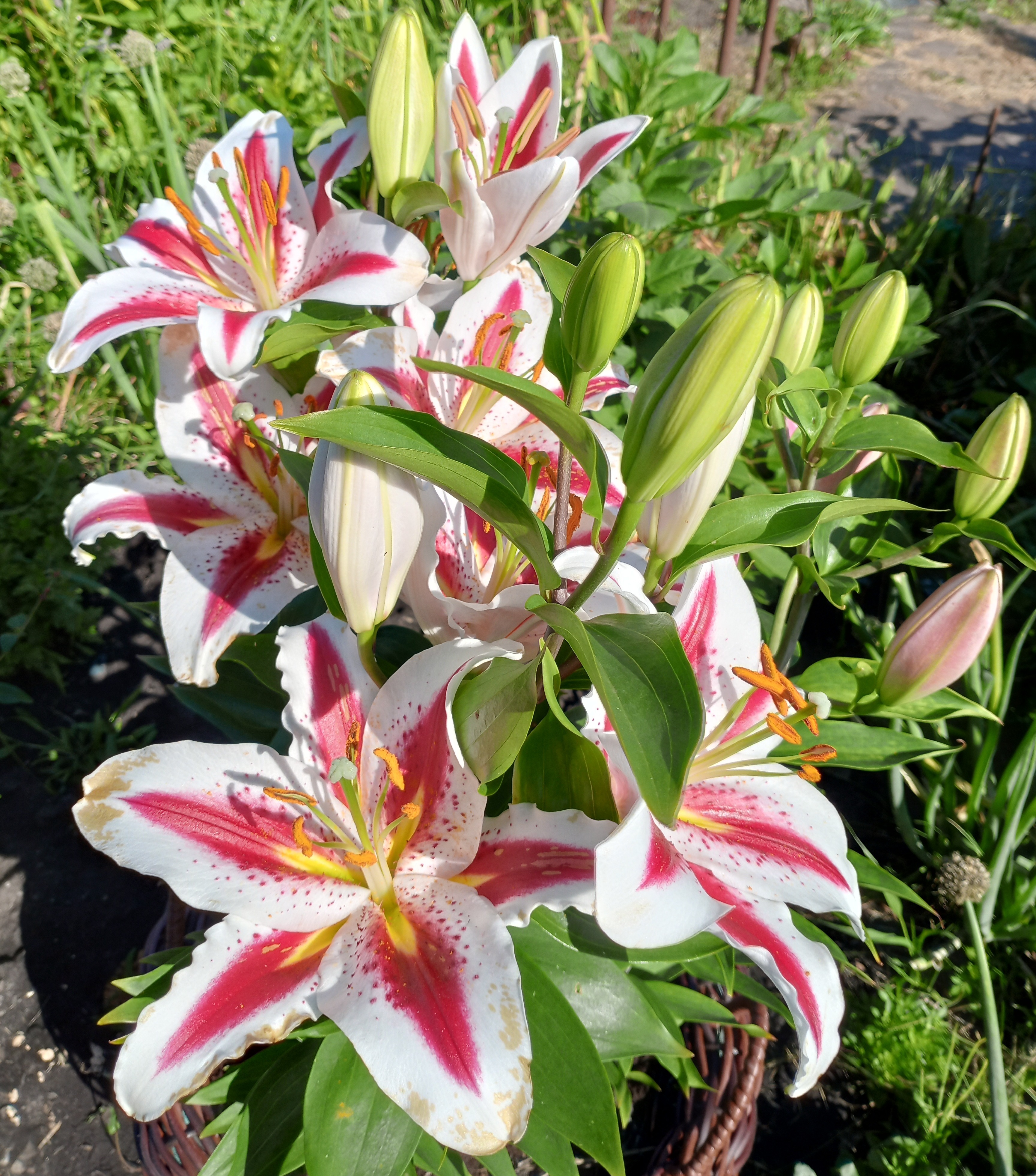 Комментарий: Шикарная лилия. Долго держит бутоны. Сажала в кашпо 12 литров. Сразу притягивает к себе взгляд. Эта лилия – полюбилась всем, соседи восхищались её красотой и цветением.