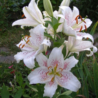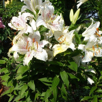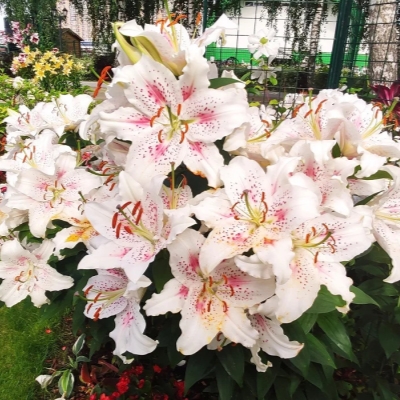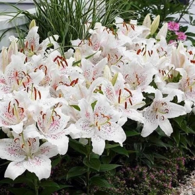 Красивейший сорт, которому сложно остаться незамеченным. Лилия Мускадет нравится всем. Это роскошный, сказочный цветок для передних планов. Цветы очень нежные, но в то же время броские. Цветение очень обильное, и даже в первый год посадки цветок замечательно себя показывает. Стебли могут быть коротковатыми, до 50 см, но это норма для первых лет после посадки. Идеальный сорт для любого сада, особенно хорош для романтичных, парадных композиций и букетов.