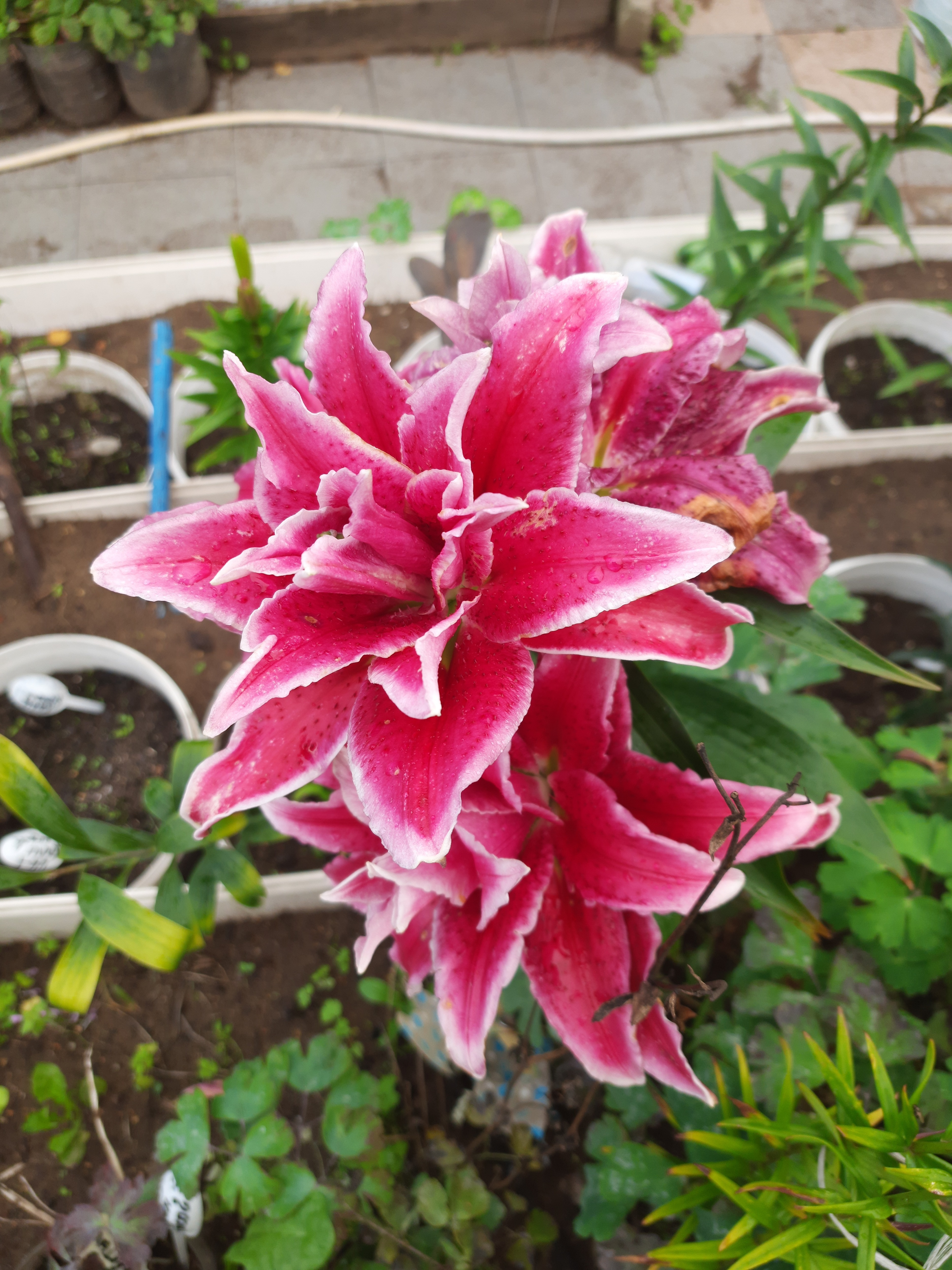 - Окраска цветка : окрашены в яркий розовый цвет и украшены белой каймой