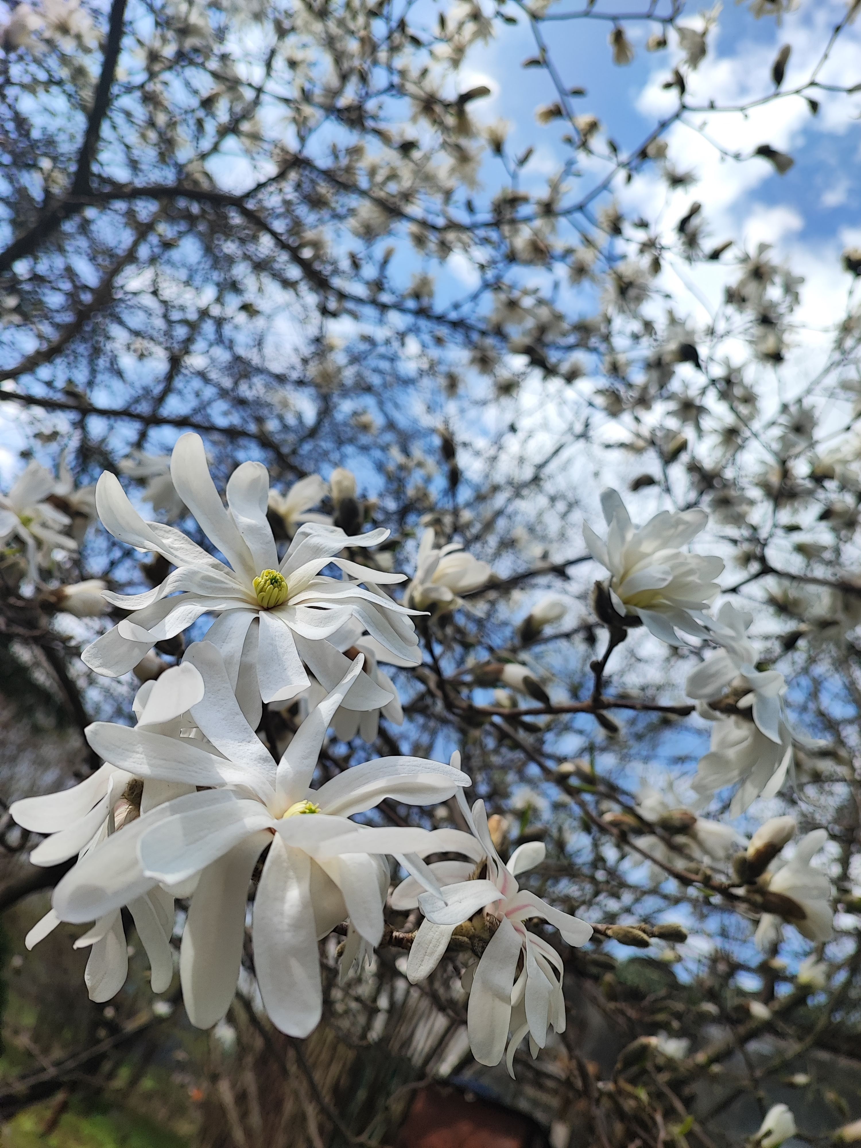 Цветение магнолии Ватерлили — это одно из самых ярких событий весны. Период цветения начинается в апреле и продолжается до мая, радуя глаз великолепными белыми цветами на протяжении примерно трех недель. Каждый бутон состоит из множества лепестков, которые распускаются постепенно, создавая эффект волшебного облака из белых цветов.