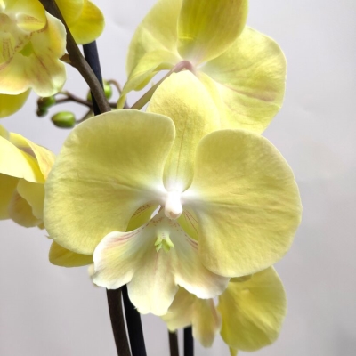 Высота орхидеи составляет около 65 см. Её листья имеют ярко-зеленый цвет и длинную форму. Размер цветка достигает 8-9 см в диаметре. Основная окраска цветков – желтая.