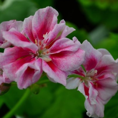 Особенностью сорта является огромное крупноцветковое соцветие. Цветки этого сорта имеют красиво повернутую форму лепестков и махровость, что делает их особенно эффектными. Окраска цветков нежно-розовая с малиновой серединкой и малиновым крапом.