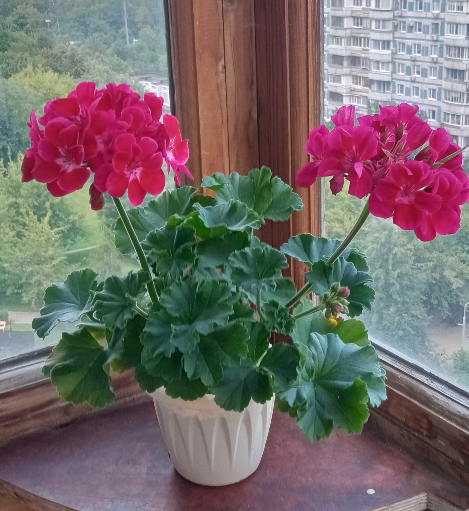 Это обильноцветущая пеларгония. Цветение начинается весной и продолжается до осени. Растение всегда радует глаз крупными соцветиями, которые привлекают внимание своей яркой окраской.
