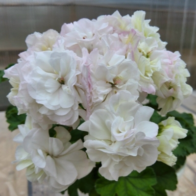 Сорт имеет компактный размер, что делает его идеальным для выращивания как в домашних условиях, так и на открытом воздухе. Направление роста побегов у пеларгонии ЮВ-Гардения — вверх и в сторону, что придает растению объемную форму. Цветоносы средней длины и крепкие, способны выдерживать тяжесть крупных соцветий.