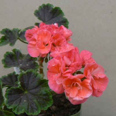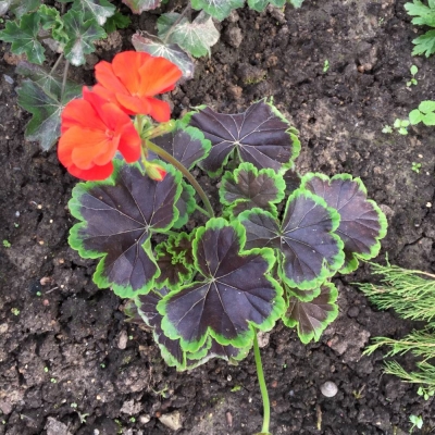 Аккуратный куст имеет компактные размеры. Его стандартная высота не превышает 30-35 см. Растение очень плотно покрыто листьями, за счет чего получает дополнительную привлекательность. Листья у этого вида пеларгонии особенно красивые. Они круглой формы имеют ярко выраженный волнистый край. При этом цвет листьев темно-шоколадный, очень близкий к черному. По краям присутствует яркая изумрудная кайма, поверхность – блестящая.