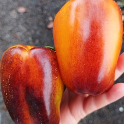 - Окраска плода : по мере созревания плоды меняют свой цвет: вначале они тёмно-фиолетового, почти чёрного цвета, постепенно становятся оранжевыми с пурпурными разводами и красноватым румянцем