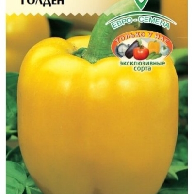 Куст перца Голден отличается высоким ростом и полураскидистой формой. Листья растения зеленые, среднего размера, с очень слабой морщинистостью. Плоды имеют кубовидную форму с глянцевой поверхностью. В технической спелости они окрашены в зеленый цвет, а по мере созревания становятся ярко-желтыми.