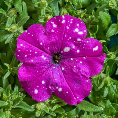 Сортосерия Dot Star произвела настоящий бум в сфере садоводства. Петуния мультифлора Дот Стар Дарк Виолет характеризуется красивыми темно-фиолетовыми бутонами с белыми крапинками. Созданный природой необычный окрас делает сорт уникальным в своем роде.
