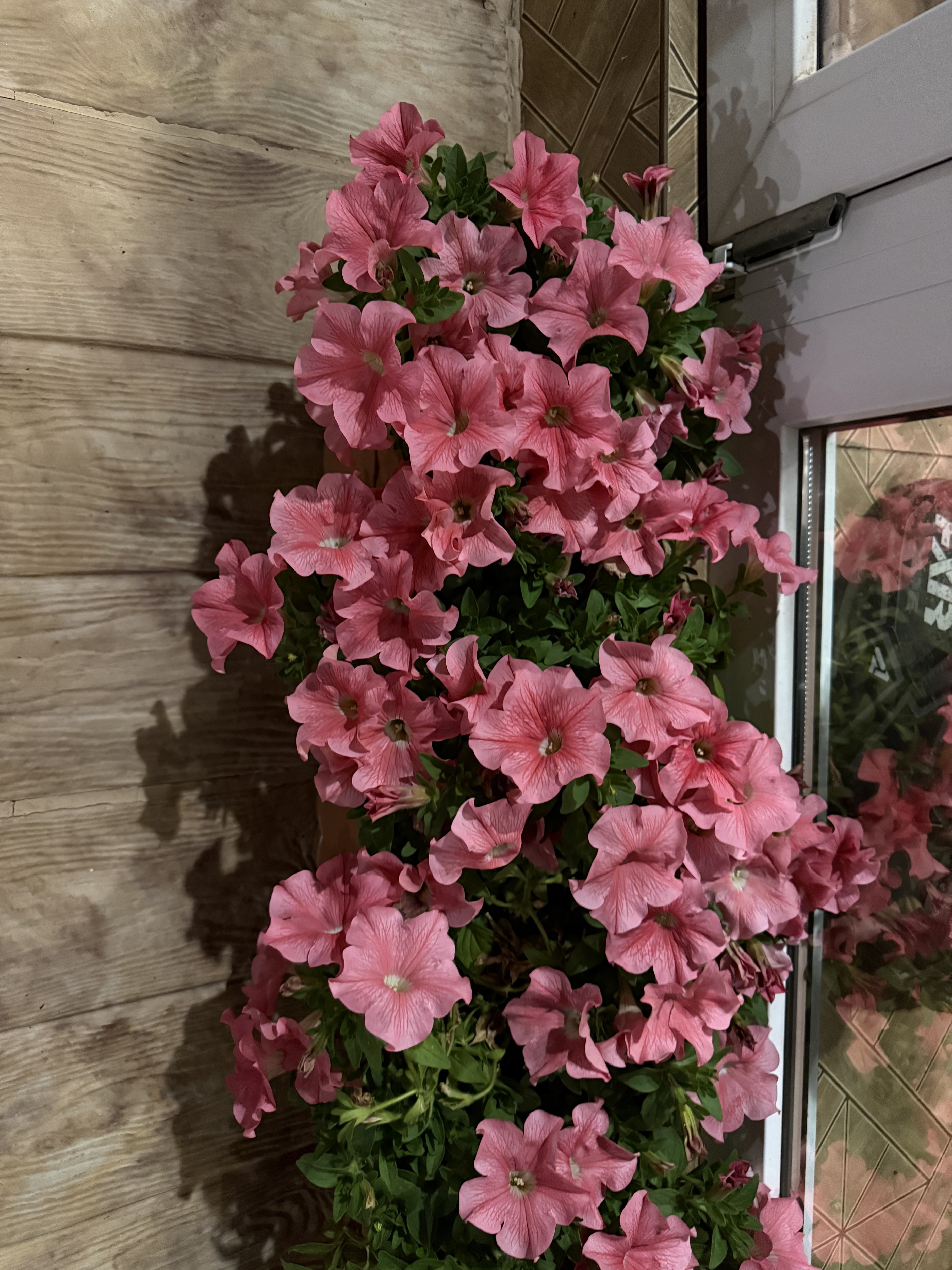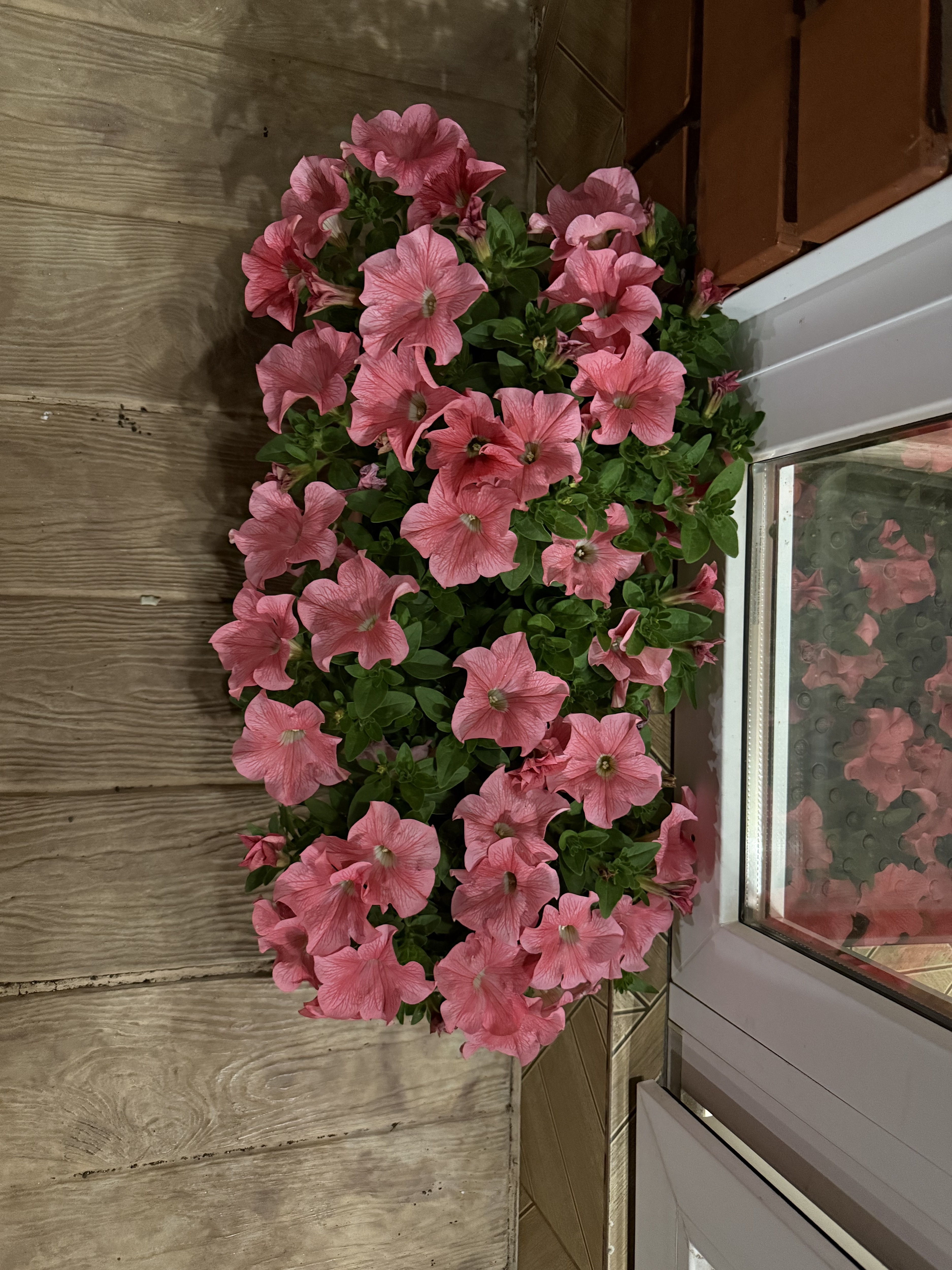 Петуния многоцветковая, цветки диаметром 6-10 см имеют красивую форму с волнистыми краями. Окраска может быть оранжевой или розовой с прожилками.