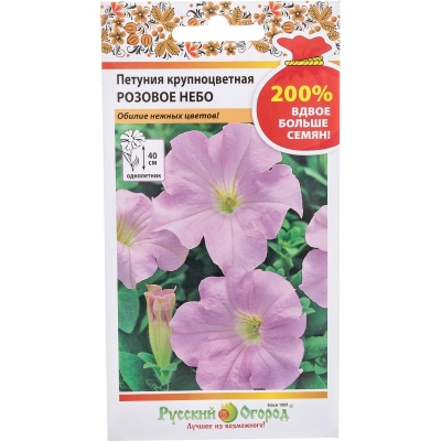 Розовое небо – это крупноцветковая сортовая петуния, которая отличается своей нежно-розовой окраской цветков. Этот сорт является идеальным выбором для украшения клумб, оконных ящиков, вазонов и подвесных корзин. Она привлекает внимание своими крупными цветами диаметром 7-10 см.