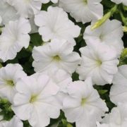 Петуния обладает обильным цветением, которое начинается уже в июне и продолжается до октября. Ее мелкие белые цветы имеют диаметр 4-5 см и приятный аромат.