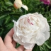 Цветение пиона Аве Мария — это настоящее зрелище! Его крупные махровые цветки распускаются постепенно, начиная с нежного светло-розового оттенка у основания лепестков и переходя к сливочному ближе к центру. Красные мазки добавляют дополнительный акцент к этому сочетанию цветов. Каждый отдельный цветок может достигать диаметра до 20 см, создавая эффект пышности и роскоши.