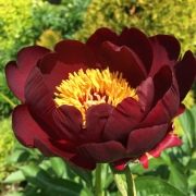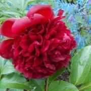 Особенностью пионов является обильное цветение в мае-июне на протяжении трех недель. На одном растении может быть от 30 до 70 цветков размером около 16 см в диаметре. Окраска пурпурно-красная, насыщенная и яркая. Форма лепестков закругленная, а структура нежная и бархатистая.
