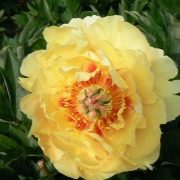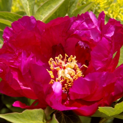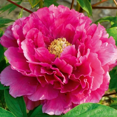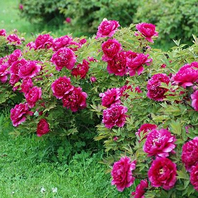 Пионы Цветы Дракона – это древовидный сорт, который используется для одиночных и групповых посадок. Он также подходит для срезки цветов. Куст полураскидистый и очень прочный, высотой от 120 до 150 см. Побеги прямостоячие, а стебли прочные. Листья ярко-зеленые и имеют ажурную форму.