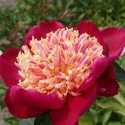 • Окраска: темно-красный цветок украшают золотисто-желтые стаминодии, над которыми расположены некрупные лепестки винно-красного цвета
