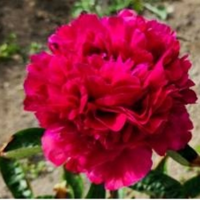Куст этого сорта раскидистый, достигает высоты около 90 см. Стебли пиона толстые и крепкие, что позволяет им удерживать крупные цветы даже при неблагоприятных погодных условиях. Листья растения крупные, темно-зеленые и блестящие, создающие контраст с яркими цветами. Цветок имеет полушаровидную форму и густомахровую структуру, достигая диаметра до 19 см. Его окраска темно-карминово-красная, что делает этот сорт особенно привлекательным для садоводов.