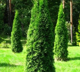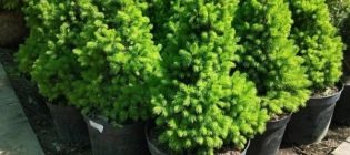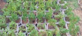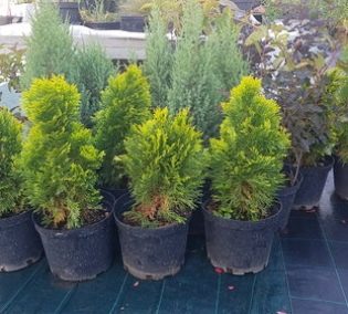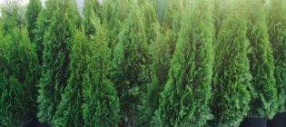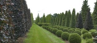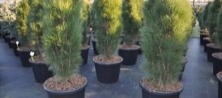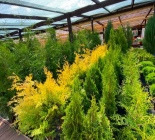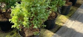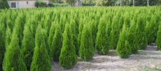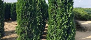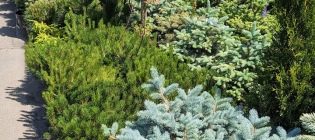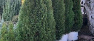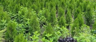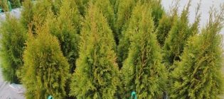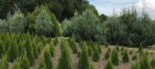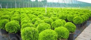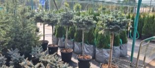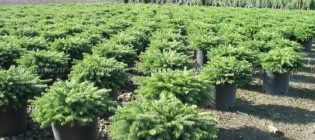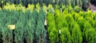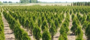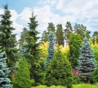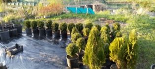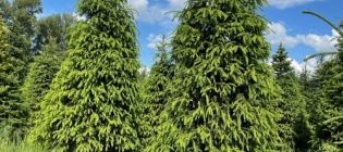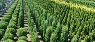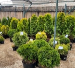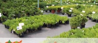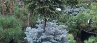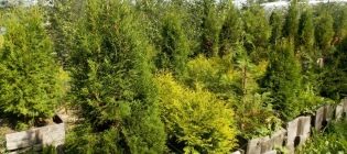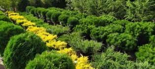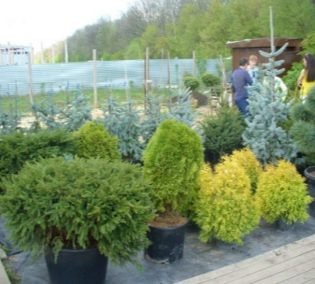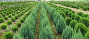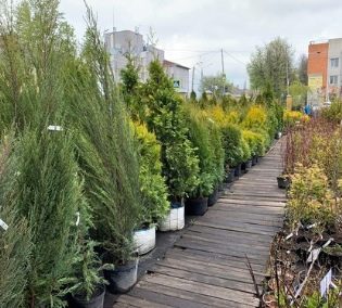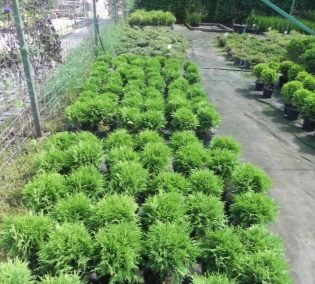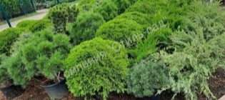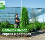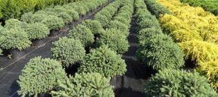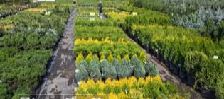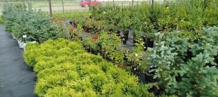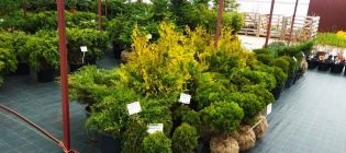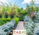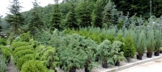 Компания предлагает сорта елей, клена, можжевельника, рододендрона, сосны, туи, яблонь