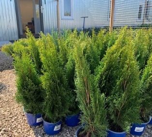 Компания предлагает сорта абрикоса, алычи, вишни, груш, елей, клена, можжевельника, пихты, сливы, сосны, туи, черешни, яблонь, деревья и кустарники, препараты для защиты и лечения растений, удобрения