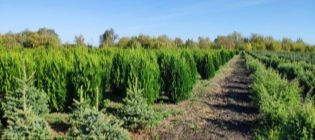 Компания предлагает сорта елей, ивы, лиственницы, можжевельника, сосны, туи