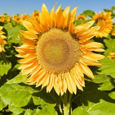 Посев семян следует проводить весной при температуре почвы не ниже +8°C на глубину около 5–7 см с расстоянием между рядами примерно 70 см. Уход за растениями включает регулярный полив (особенно во время цветения), прополку от сорняков и внесение минеральных удобрений согласно результатам анализа почвы. Подсолнечник хорошо реагирует на азотные удобрения во время активного роста.