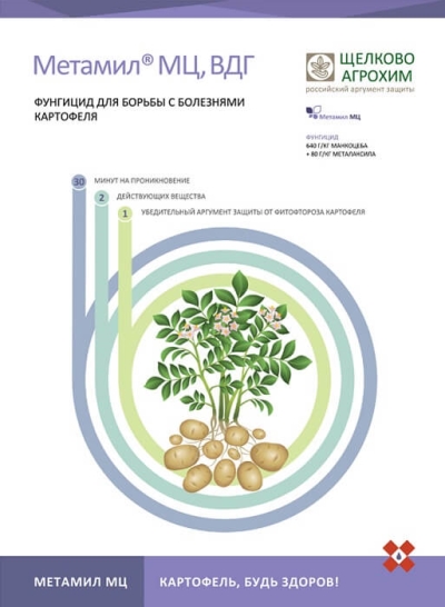 Наиболее эффективно состав Метамил МЦ борется с альтернариозом, фитофторозом.