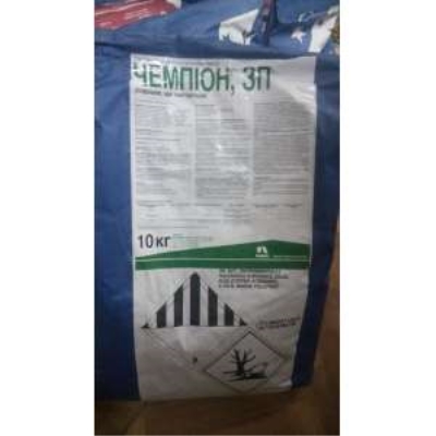 Чемпион эффективно борется с такими заболеваниями растений, как милдью винограда, курчавость персика, макроспориоз и фитофтороз картофеля и томатов, а также пероноспороз хмеля и яблоневая парша.