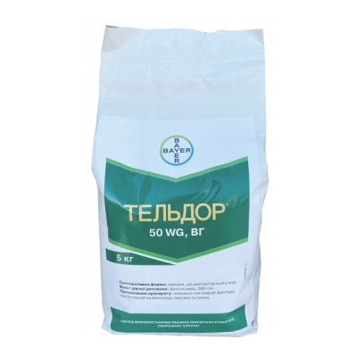 Препаративная форма Тельдора – это гранулированный водно-дисперсионный порошок, из которого готовится раствор для опрыскивания растений. В продаже можно встретить упаковки в виде мешков по 5 и 10 килограммов.