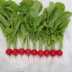 Листья редиса узкообратнояйцевидные с округлой верхушкой имеют среднюю длину или длиннее; они зеленые от светлой до средней интенсивности, с небольшим количеством долей по краям. Слабое опушение делает листья более гладкими на ощупь.