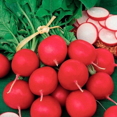 Корнеплоды этого редиса округлой формы, с плоской головкой, насыщенного красного цвета. Масса товарного корнеплода составляет от 15 до 19 граммов, а мякоть белая, нежная и сочная, с отличными вкусовыми качествами — она обладает слабоострым вкусом. Эти характеристики делают редис не только привлекательным внешне, но и очень вкусным продуктом.