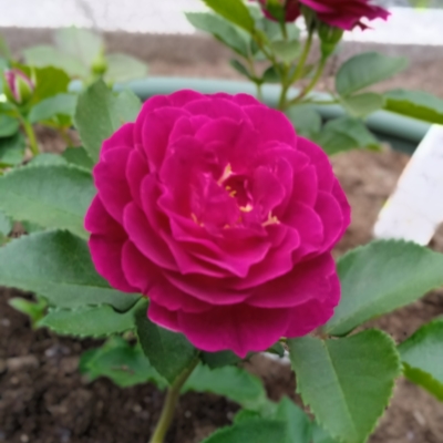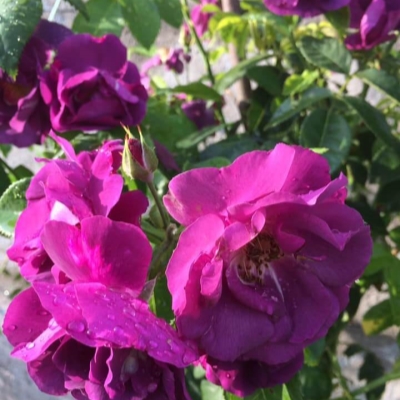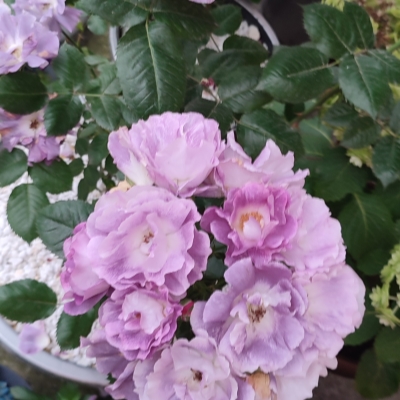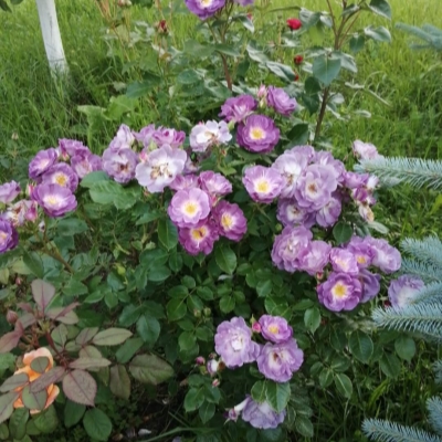 Комментарий: Данный куст отдала мне соседка, которая решила переехать из загородного дома в квартиру. Внешне цветы выглядят не как классические розы, а из-за лилового оттенка далёкие от цветоводства люди путают их с анютиными глазками.