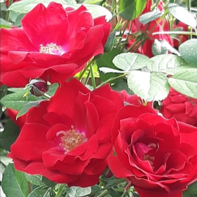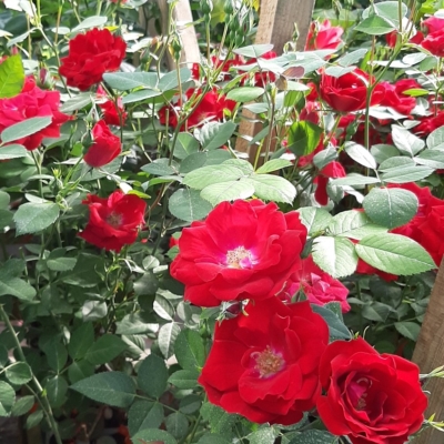 Соцветия роз, содержащие от 3 до 5 цветков, начинают распускаться уже в первых числах июня. Иногда это даже конец мая, если весна пришла очень рано. Обильное цветение продолжается до сентября или октября, при этом оно непрерывное. Пахнут розы очень слабо, нотки свежие, цветочные.