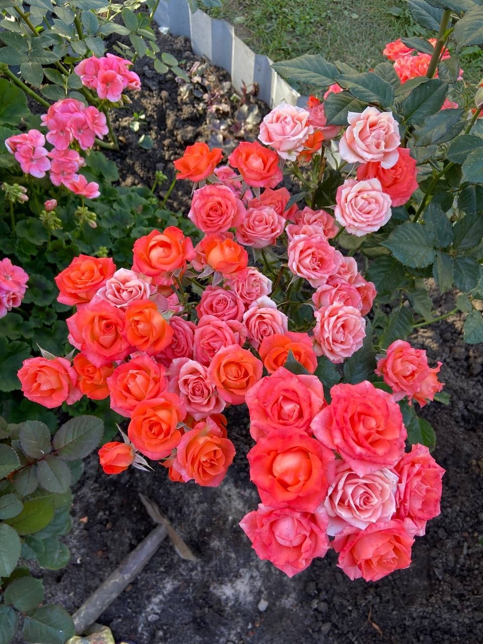 Комментарий: Роза беспроблемная, здоровая, цветет большими кистями беспрерывно и до самых морозов.