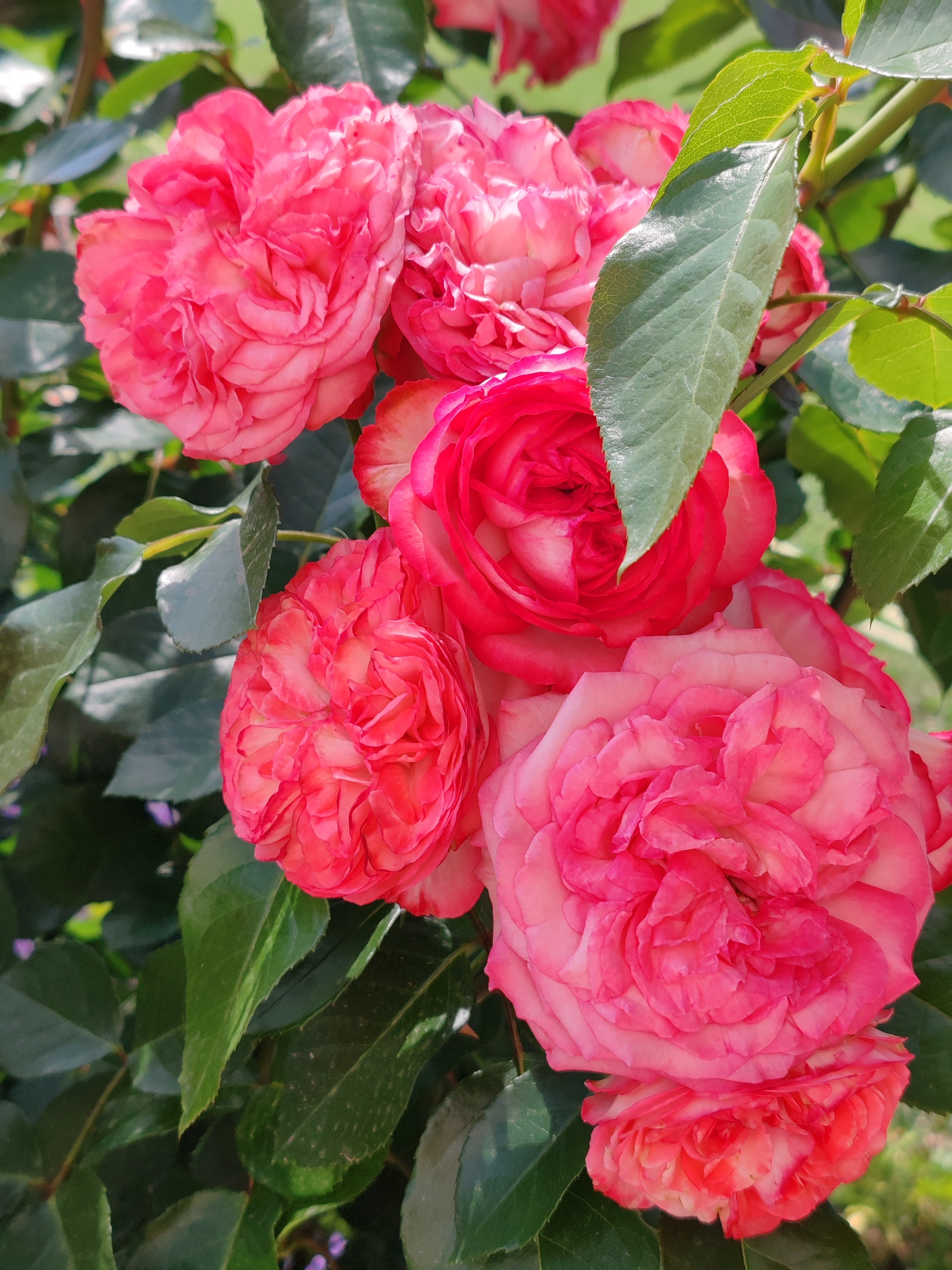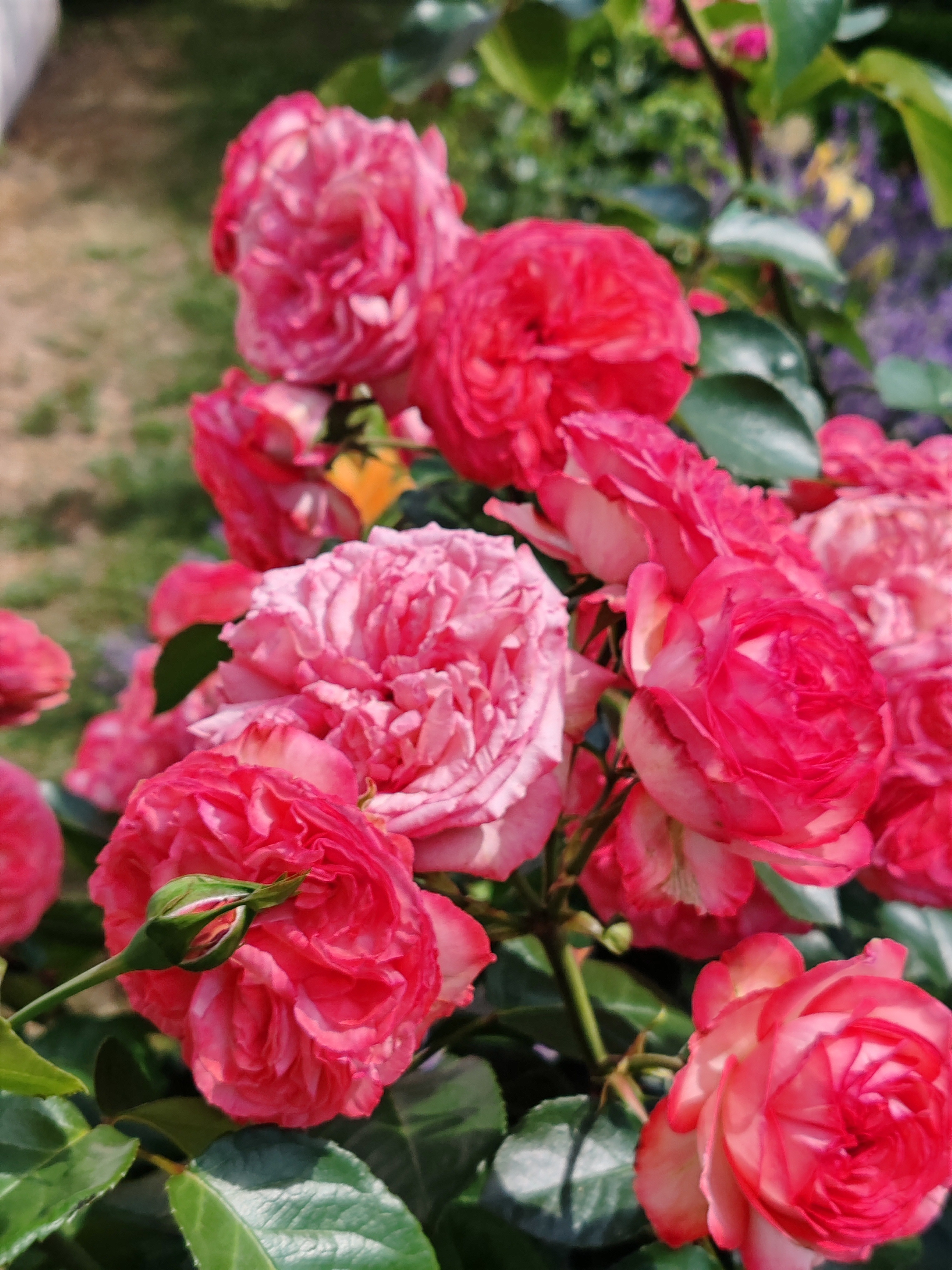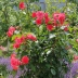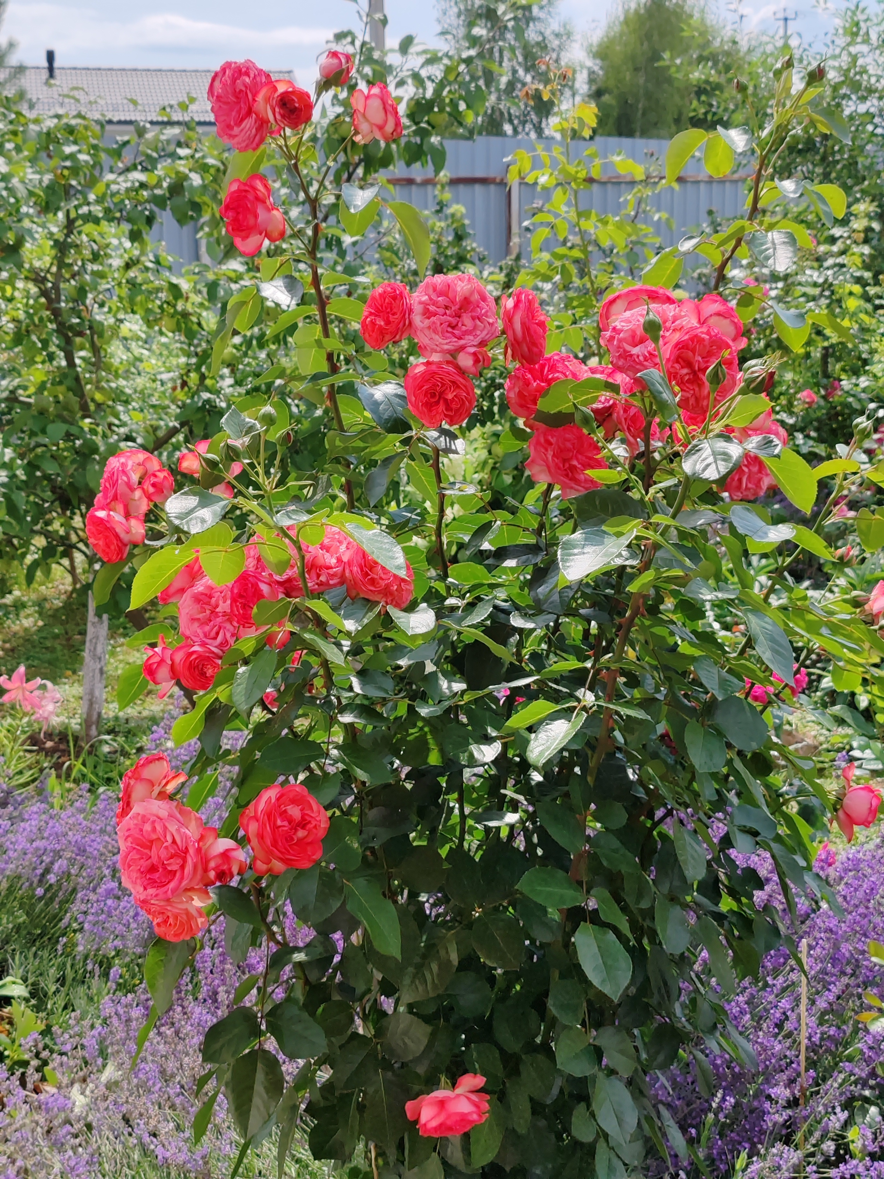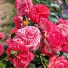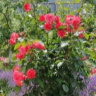 На его место я посадила саженец Антик, и хочу сказать, что замена оказалась очень достойной. За два года куст вырос более чем на три метра и продолжает развиваться, выпуская толстые побеги и увеличиваться в ширину. Хорошо, что вокруг него есть достаточно места для дальнейшего развития. Цветет данный сорт гроздьями, на каждом стебле много бутонов, причём распускаются они одновременно. Лепестки долго не осыпаются и радуют глаз в течение длительного времени.