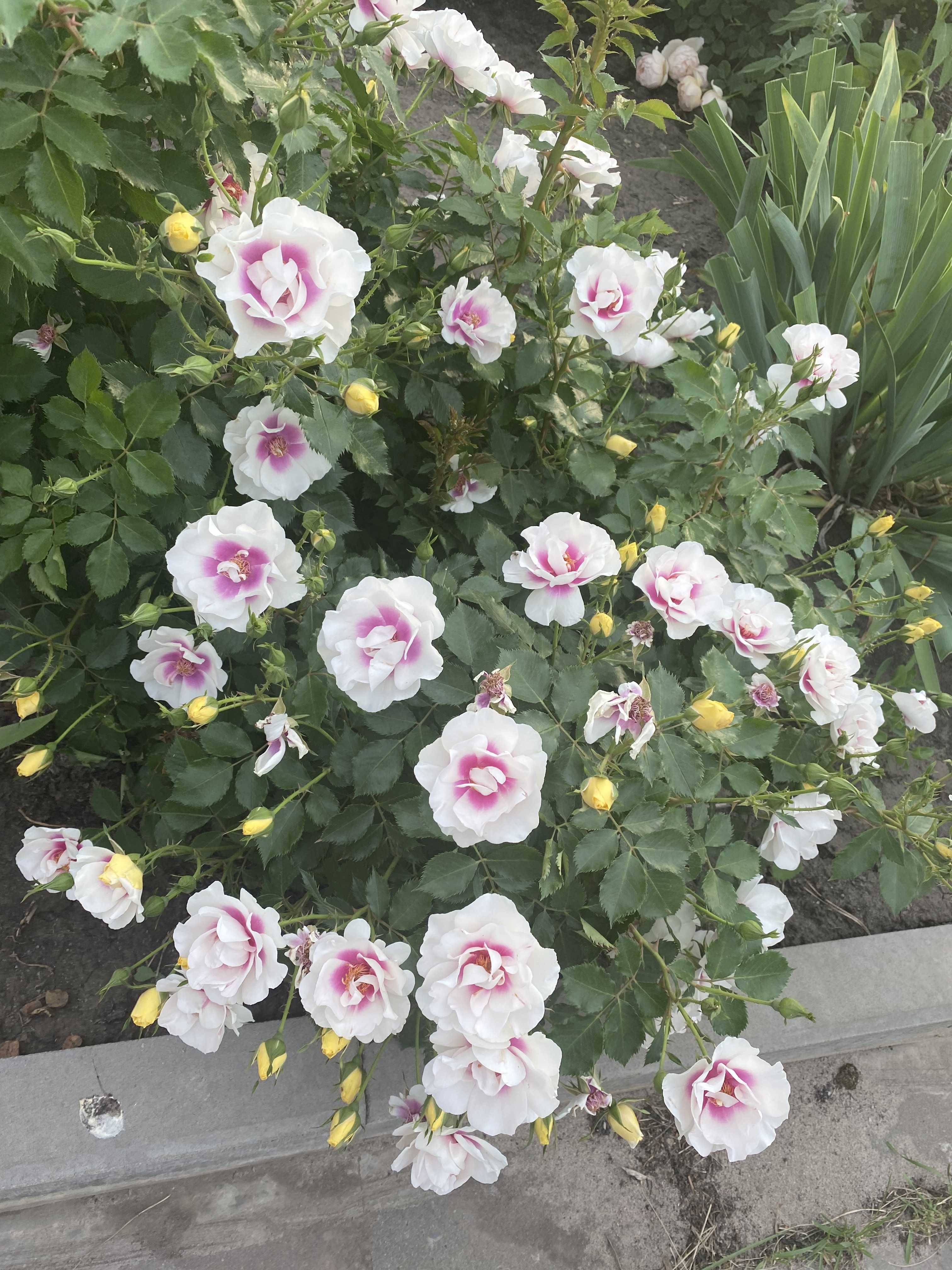 Преимущества: Цветет почти не переставая. Красивые двухцветные цветки, в бутоне они желтые, а когда раскрываются, становятся белыми с красно- розовой серединой.